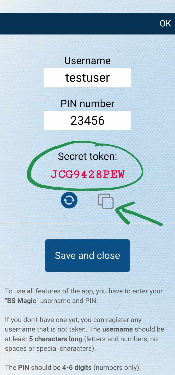- copy the secret token (grey icon)