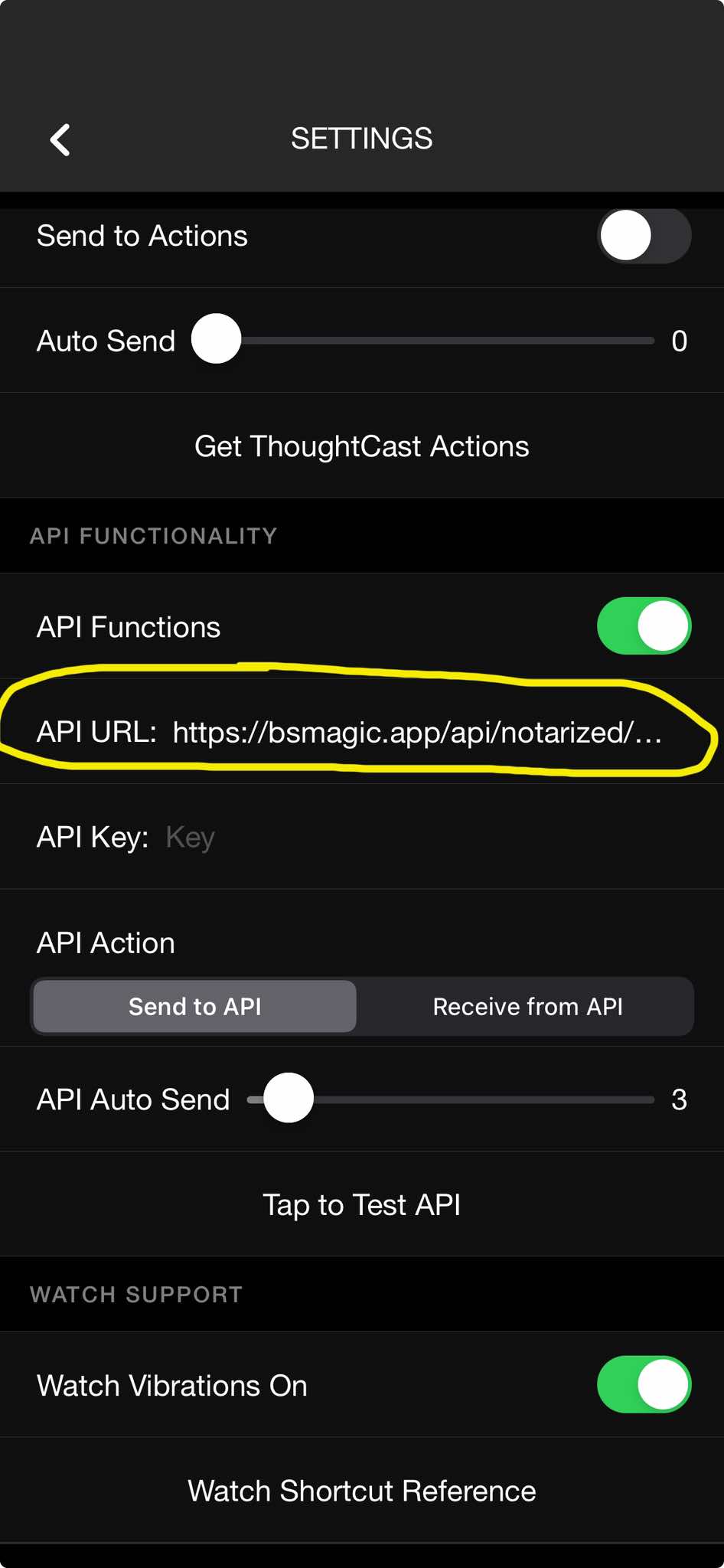 - for the API URL, enter this: https://bsmagic.app/api/notarized/TOKEN (replace TOKEN with your token from MysterSmith)