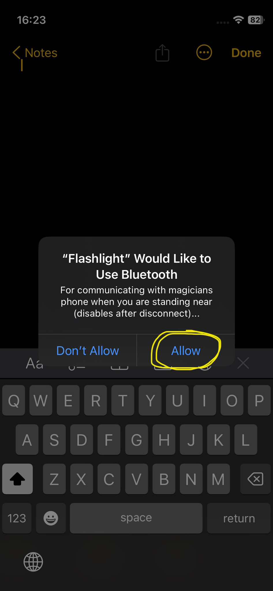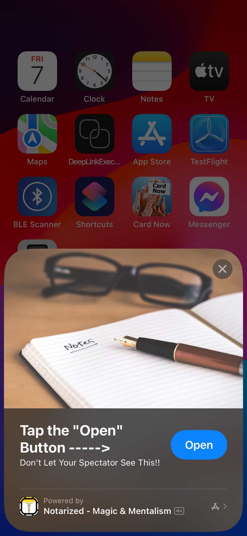- touch your prepared NFC card to the spectator's iPhone, and start the fake Notes app
