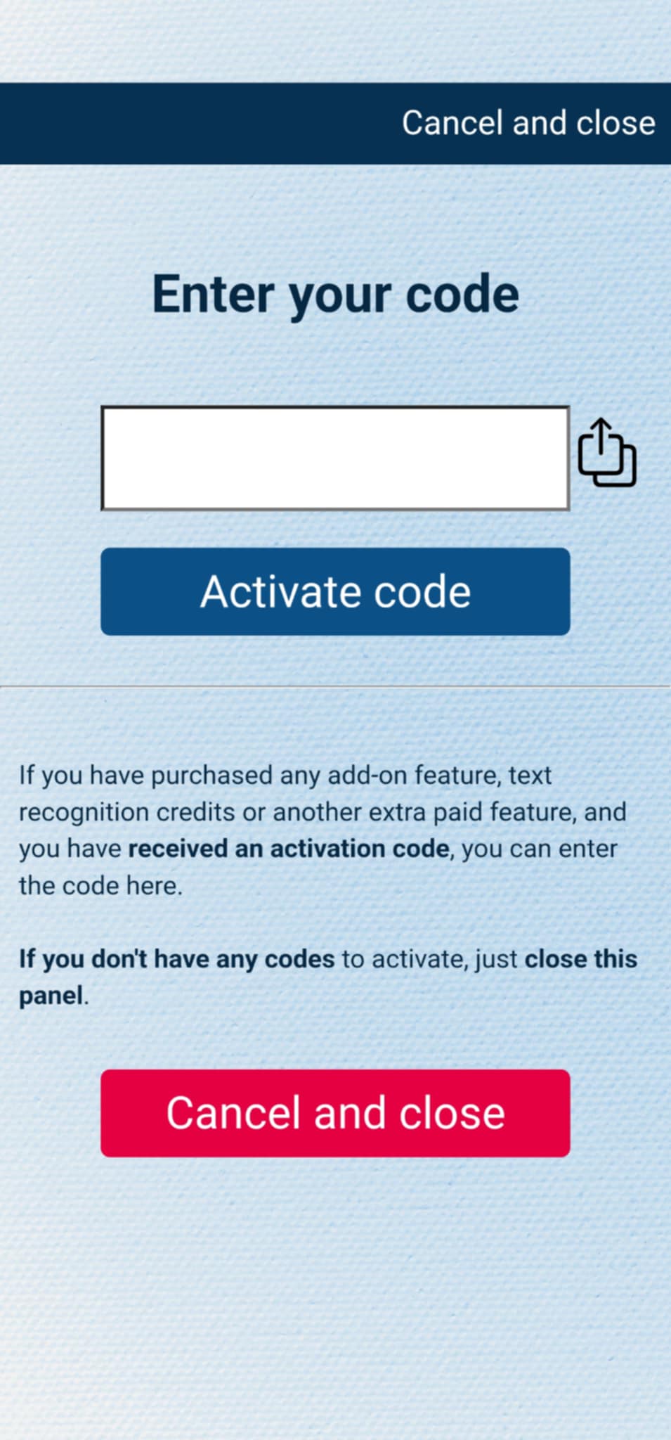 If you have purchased the add-on separately, or received the code as a gift, you can activate the code by entering it in MysterSmith, in the ACCOUNT STTINGS section. Just look for the line " Do you have a code? ", and " Tap to enter ", and the code activation screen will pop up.
